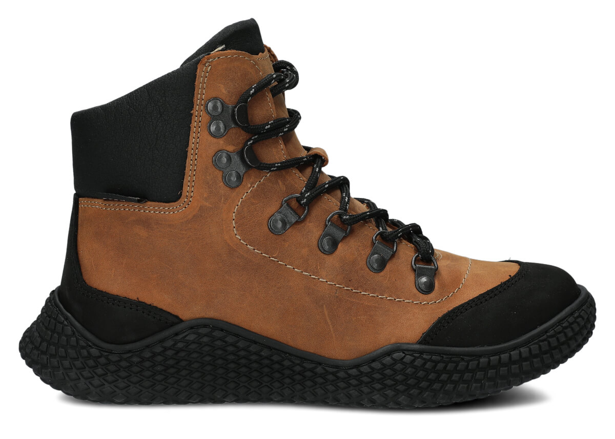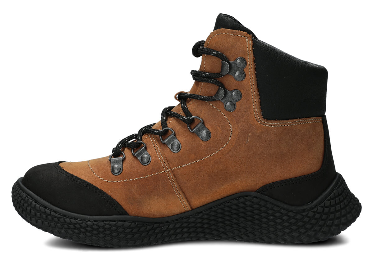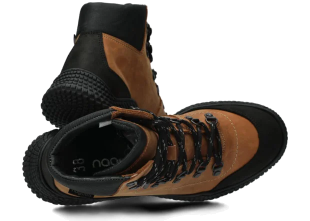 Die Damenschnürschuhe Nagaba 624 in Braun-Crazy sind ein Modell, das genau den Geschmack von Frauen und Teenagern trifft – sie verbinden sportliche Energie mit Alltags-Eleganz. Der hohe Schaft über dem Knöchel, die kontrastreiche Kombination aus Braunfarbenem und schwarzem Crazy-Leder sowie die handgefertigte Herstellung in Polen lassen diese Jugendschuhe modern aussehen und gleichzeitig äußerst langlebig und bequem sein.