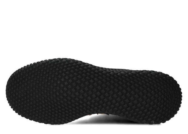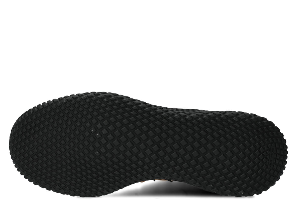 Der Schaft besteht aus einer Kombination von zwei Crazy-Ledern, die dominante Braunfarbene natürliche Crazy-Leder kombiniert mit schwarzen Einsätzen an der Kappe, der Ferse und dem Kragen schafft einen sehr charakteristischen urban-outdoor Look. Das dicke, fleischige, geölte Leder mit natürlichen Flecken, Abrieben und Kratzern macht jedes Paar etwas anders, was ein Gefühl von Einzigartigkeit verleiht.