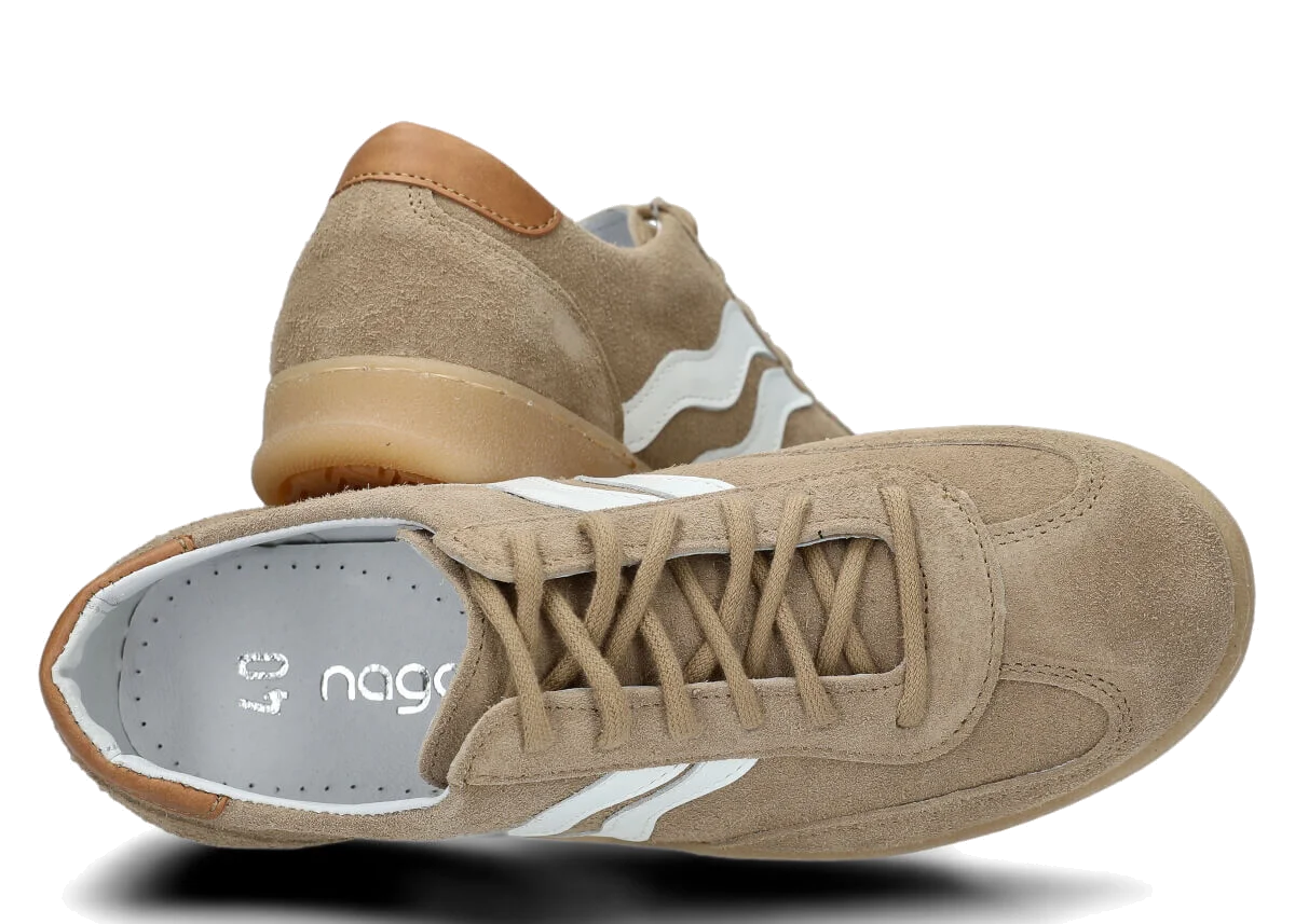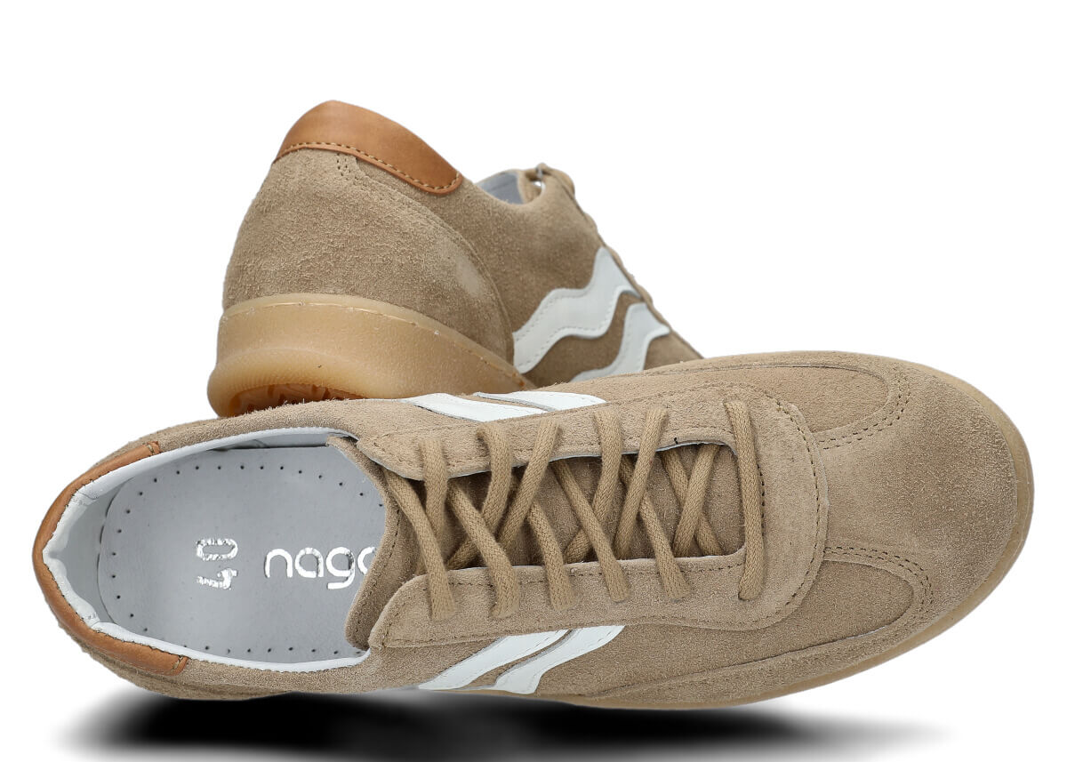 Der Halbschuh Nagaba 129 aus Beige Veloursleder ist ein Klassiker. Ein Modell, das auf die neuesten Trends verweist.