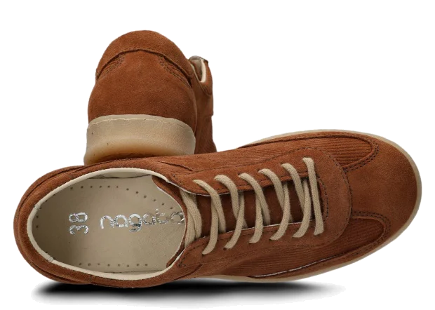 Die Damen Halbschuhe Nagaba 130 aus braunem Veloursleder bringen zeitlose Klassiker in einen modernen Kontext – ideal für junge Frauen und Teenagerinnen, die bequeme Schuhe mit Charakter suchen. Das Obermaterial aus natürlichem Veloursleder in einheitlichem Braun, kombiniert mit natürlichem Veloursleder im gerippten Cord-Design, erinnert an Vintage-Trends der 70er- und 80er-Jahre und verleiht jedem Outfit einen einzigartigen, kulturellen Retro-Vibe. In Polen von Hand aus ausgewählten Materialien gefertigt, verbinden diese Jugend-Halbschuhe die Weichheit von Velours mit der Alltagstauglichkeit für städtische Straßen.