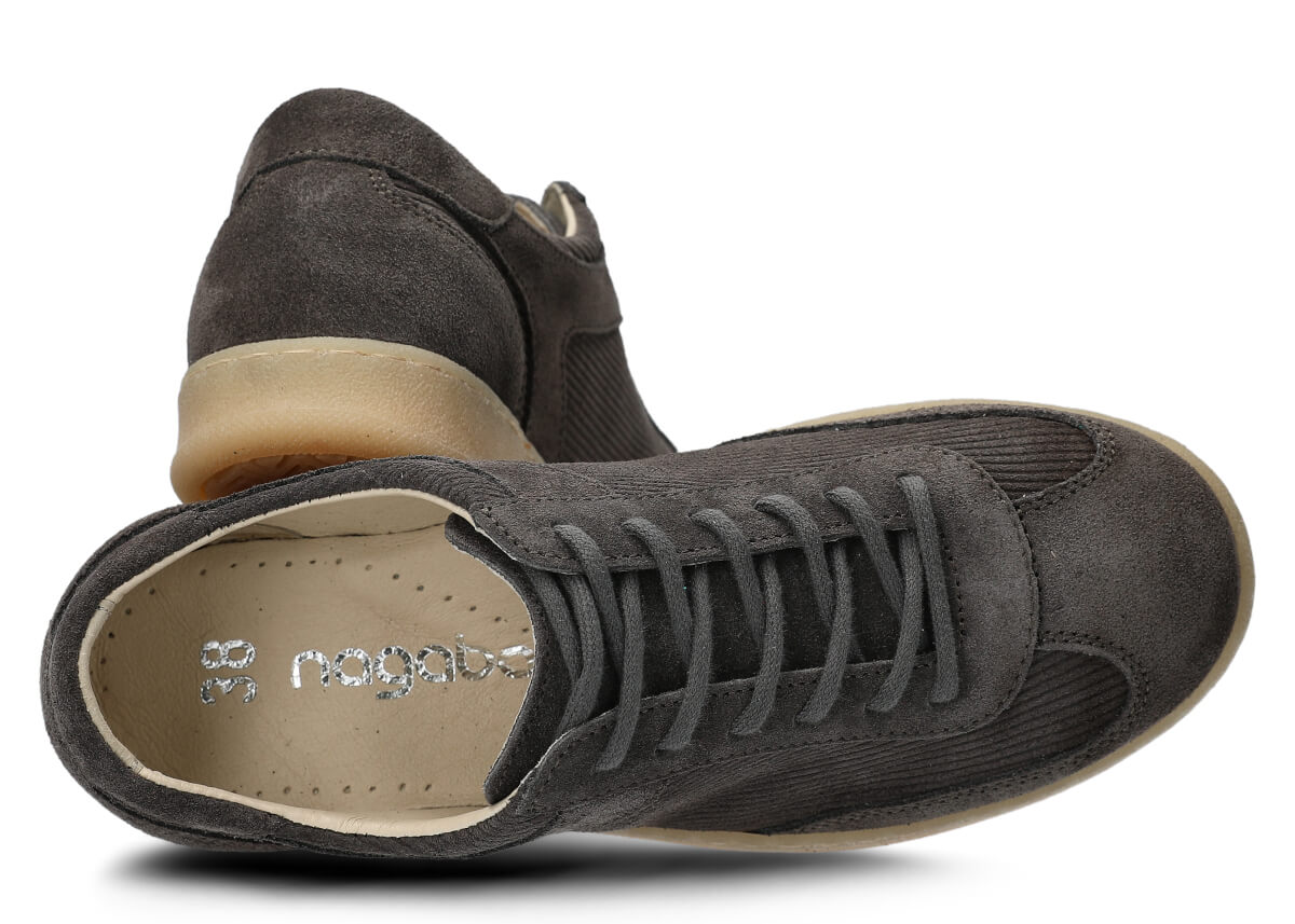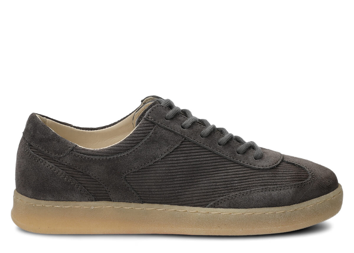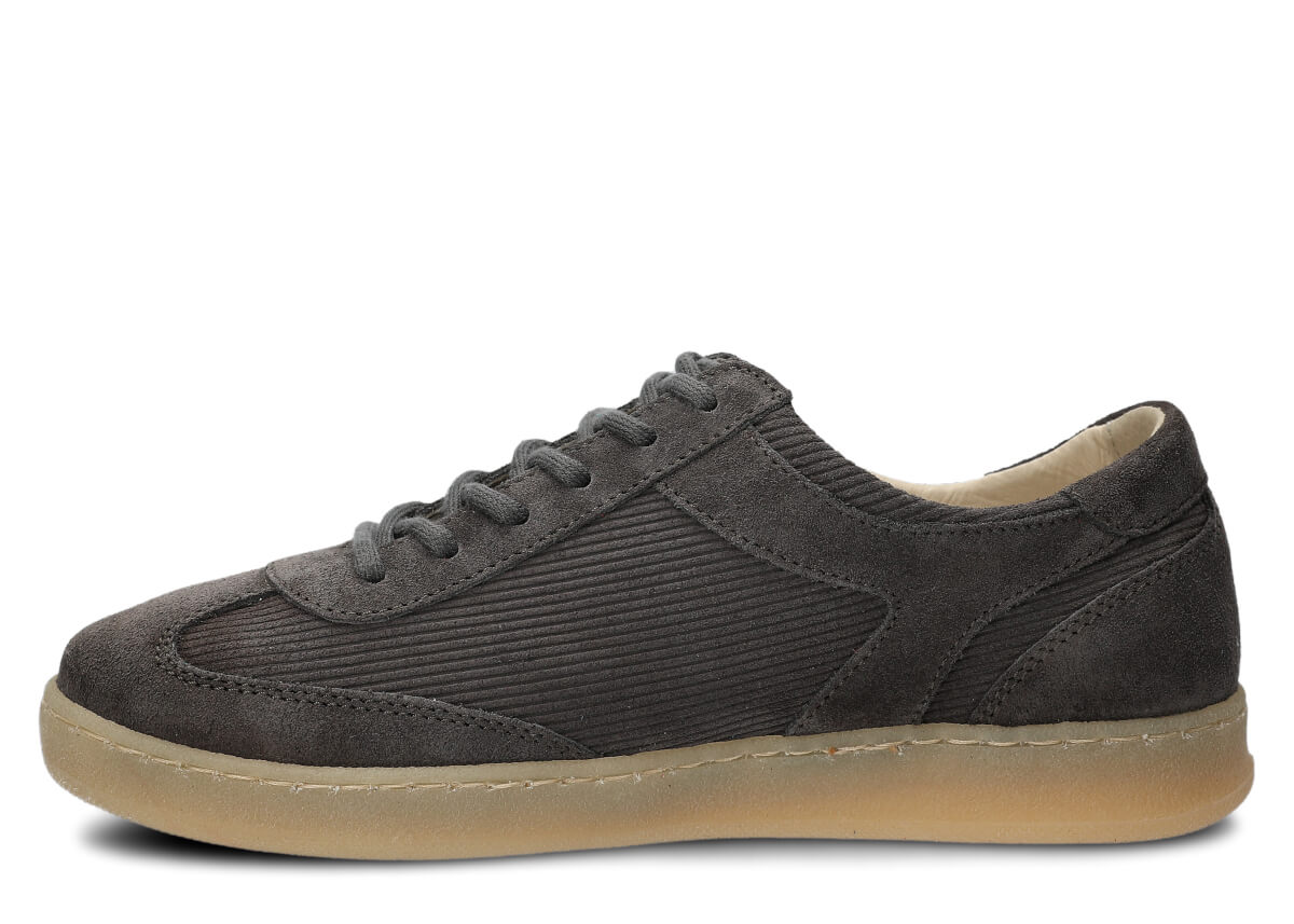 Die Damen Halbschuhe Nagaba 130 aus Graphit Veloursleder bringen zeitlose Klassiker in einen modernen Kontext – ideal für junge Frauen und Teenagerinnen, die bequeme Schuhe mit Charakter suchen. Das Obermaterial aus natürlichem Veloursleder in einheitlichem Graphit, kombiniert mit natürlichem Veloursleder im gerippten Cord-Design, erinnert an Vintage-Trends der 70er- und 80er-Jahre und verleiht jedem Outfit einen einzigartigen, kulturellen Retro-Vibe. In Polen von Hand aus ausgewählten Materialien gefertigt, verbinden diese Jugend-Halbschuhe die Weichheit von Velours mit der Alltagstauglichkeit für städtische Straßen.