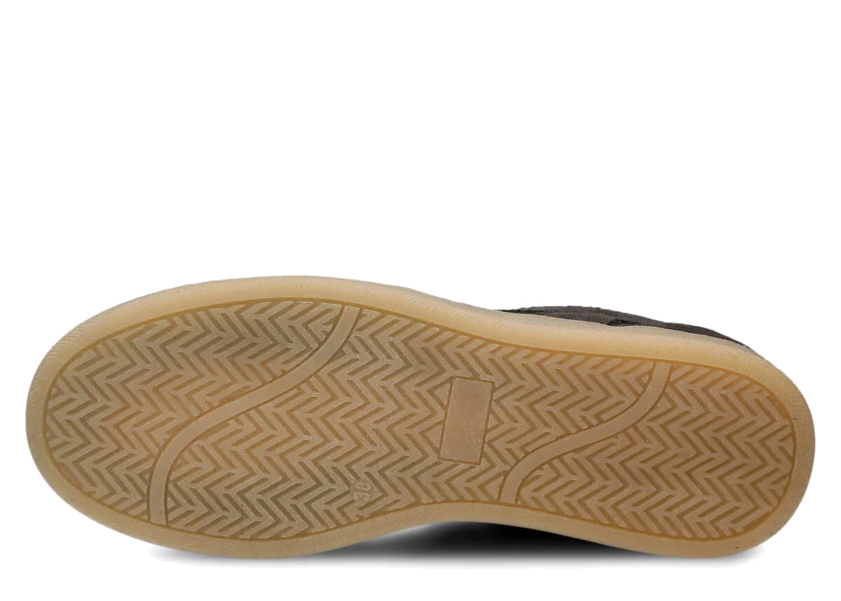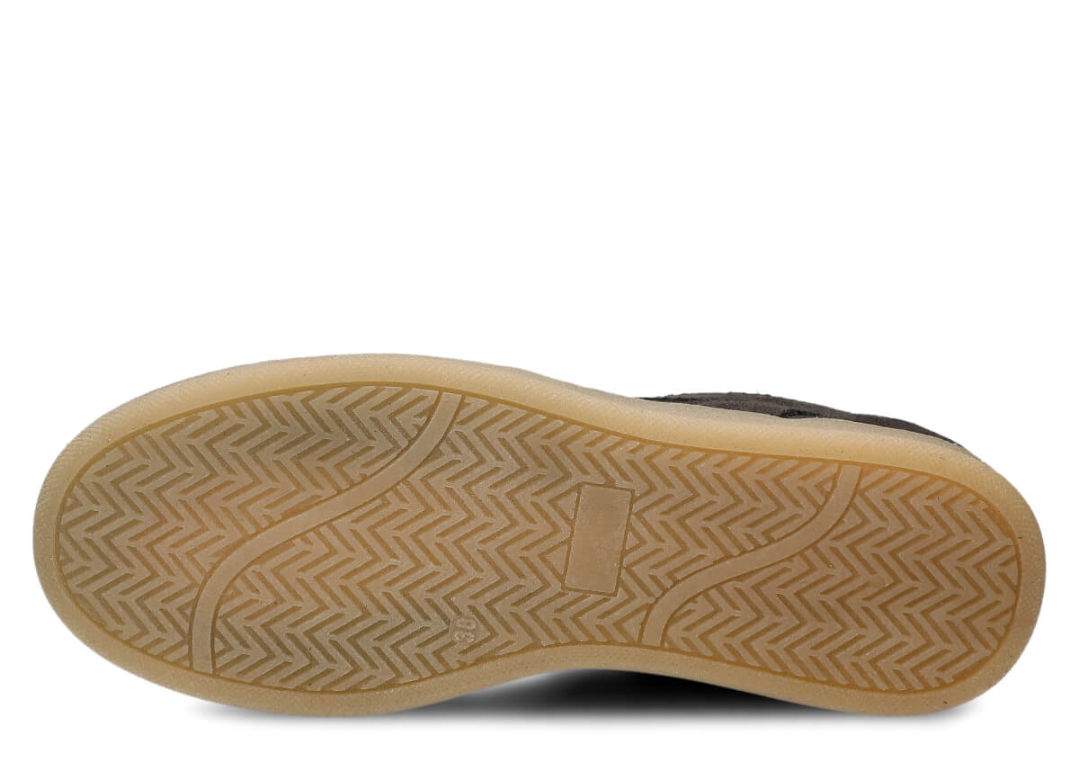 Die gesamte Konstruktion basiert auf natürlichem Leder: Velours-Obermaterial, Futter und Decksohle aus Schweinsleder – das garantiert hervorragende Belüftung und Hygiene. Feuchtigkeit wird effektiv abgeleitet, die Füße bleiben auch nach einem langen Tag angenehm trocken und frisch. Die TR-Thermokautschuk-Laufsohle, sowohl geklebt als auch rundum genäht, ist flach, rutschhemmend und stabil – ideal für Stadtpflaster und leichte Spaziergänge.