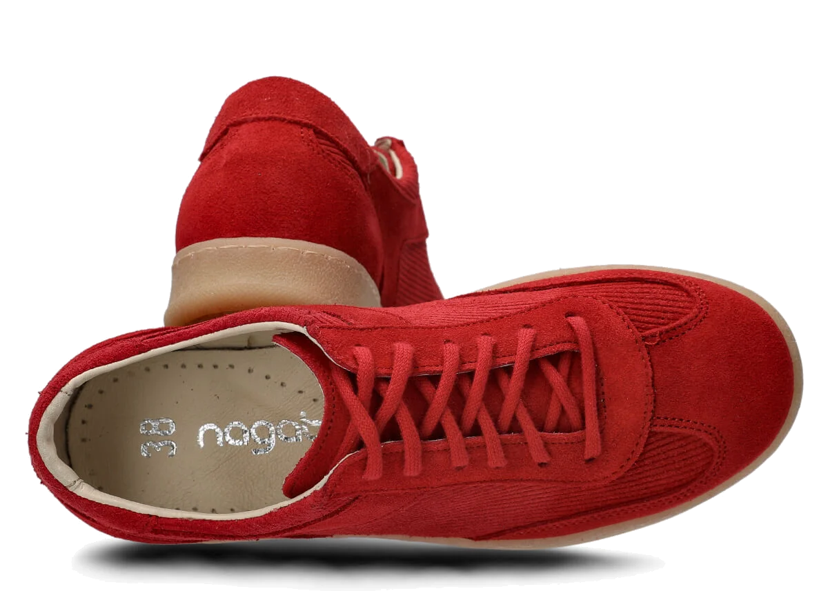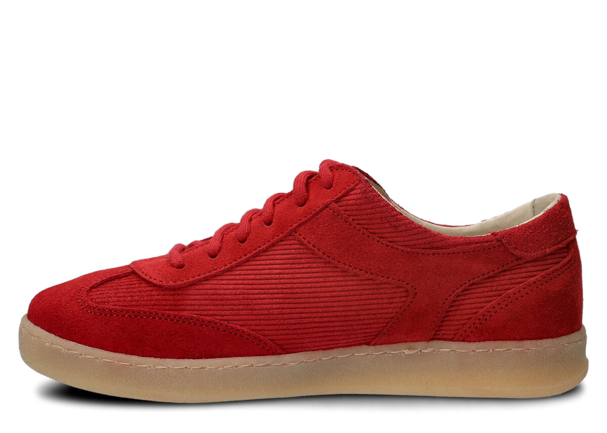Die Damen Halbschuhe Nagaba 130 aus rotem Veloursleder bringen zeitlose Klassiker in einen modernen Kontext – ideal für junge Frauen und Teenagerinnen, die bequeme Schuhe mit Charakter suchen. Das Obermaterial aus natürlichem Veloursleder in einheitlichem Rot, kombiniert mit natürlichem Veloursleder im gerippten Cord-Design, erinnert an Vintage-Trends der 70er- und 80er-Jahre und verleiht jedem Outfit einen einzigartigen, kulturellen Retro-Vibe. In Polen von Hand aus ausgewählten Materialien gefertigt, verbinden diese Jugend-Halbschuhe die Weichheit von Velours mit der Alltagstauglichkeit für städtische Straßen.