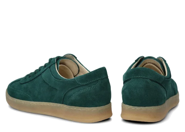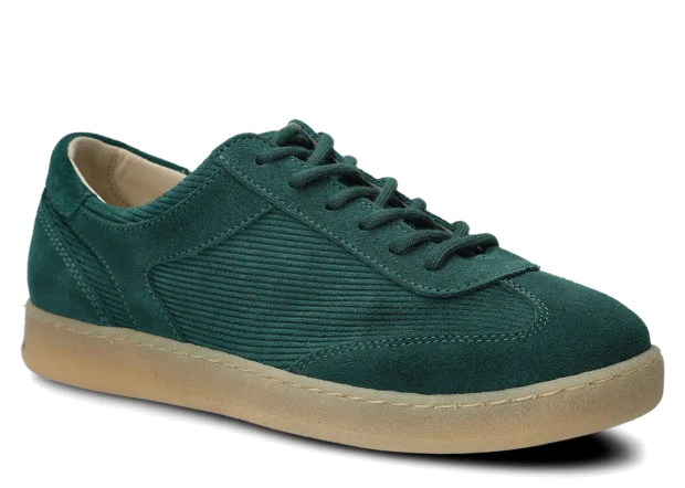 Die Damen Halbschuhe Nagaba 130 aus Smaragdgründ Veloursleder bringen zeitlose Klassiker in einen modernen Kontext – ideal für junge Frauen und Teenagerinnen, die bequeme Schuhe mit Charakter suchen. Das Obermaterial aus natürlichem Veloursleder in einheitlichem Smaragdgründ, kombiniert mit natürlichem Veloursleder im gerippten Cord-Design, erinnert an Vintage-Trends der 70er- und 80er-Jahre und verleiht jedem Outfit einen einzigartigen, kulturellen Retro-Vibe. In Polen von Hand aus ausgewählten Materialien gefertigt, verbinden diese Jugend-Halbschuhe die Weichheit von Velours mit der Alltagstauglichkeit für städtische Straßen.