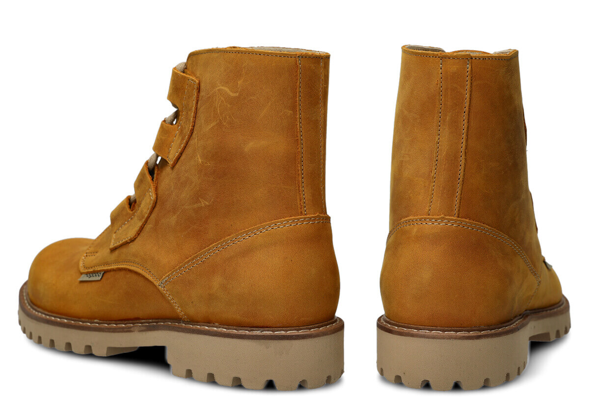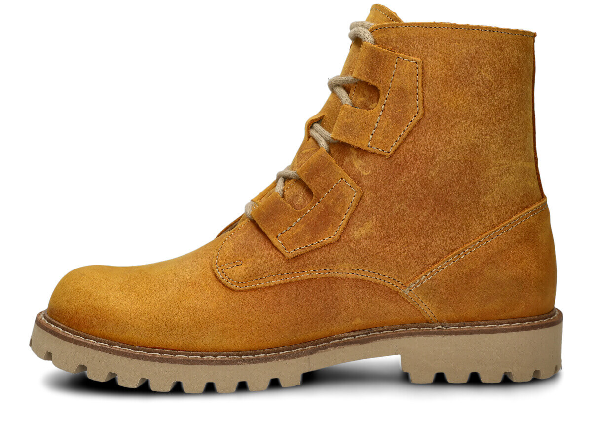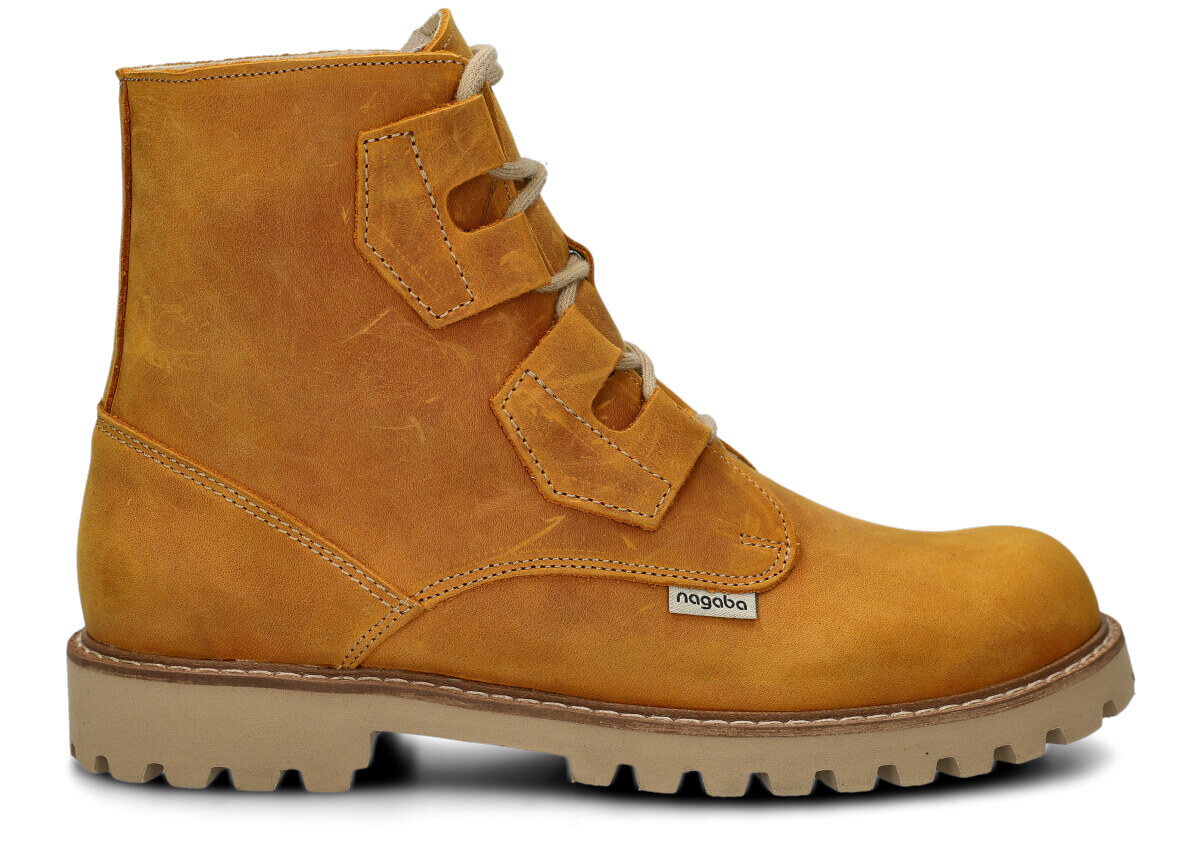 Die NAGABA Trapper 488/1 aus Crazy-Leder in Gelb überzeugen durch sorgfältige Verarbeitung und einen modernen Stil, der sich vielseitig zu anderen Kleidungsstücken kombinieren lässt.
