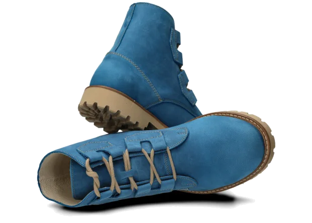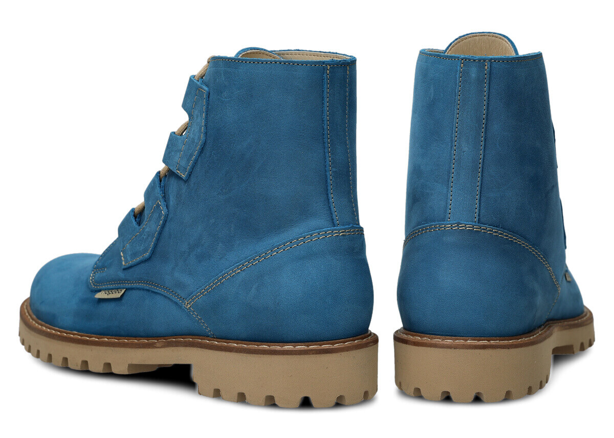 Blue - Vollnarbenleder, mit einem zarten matten Finish. Weich, fleischig, sehr flexibel. Gleichzeitig sehr strapazierfähig. Perfekt für Stiefeletten, Kavalleriestiefel. Schuhe aus diesem Leder haben ein elegantes Aussehen.