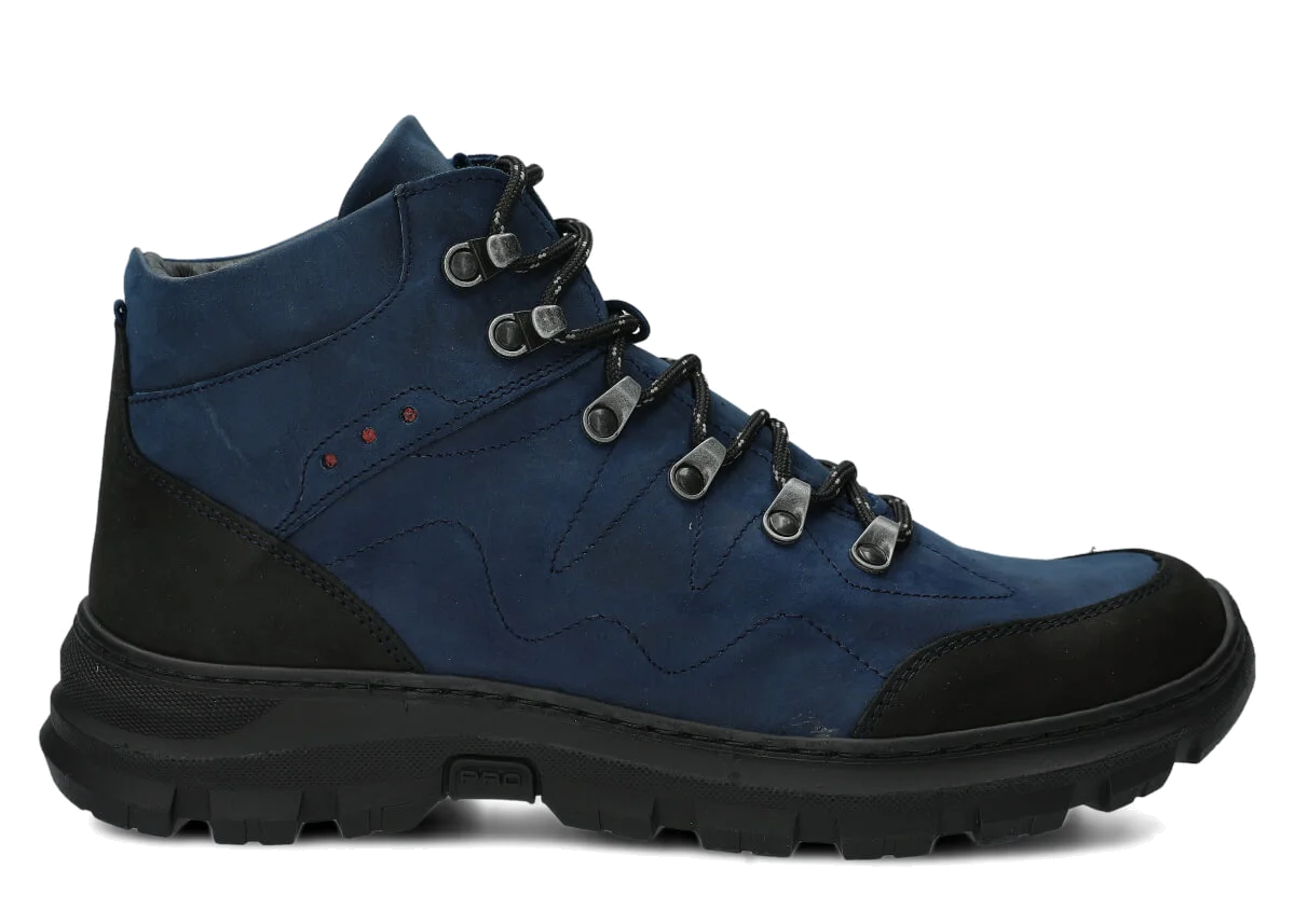 Herren Trekkingstiefel Leder Nagaba 4091 Dunkelblau Crazy – Komfort, Langlebigkeit und Stil in handwerklicher Ausführung. Wählen Sie die Isolierungsvariante, Größe und Farbe – bestellen Sie noch heute!