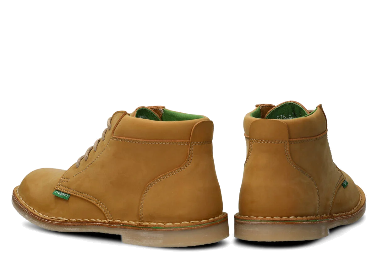 Crazy - fleischiges, dickes Vollnarbenleder. Die Narbenseite ist geölt (mit Wachs oder Fett). Sehr strapazierfähiges Leder, daher oft für die Herstellung von Trekking-, Trapper- und massiven Stiefeln verwendet. Das Leder hat charakteristische dunkle, fettige Flecken, die sich an einigen Stellen zur Grundfarbe hin ausdehnen und an anderen dunkel bleiben. Häufig hat das Leder Kratzer, Abschürfungen und Verfärbungen, die es einzigartig machen.
