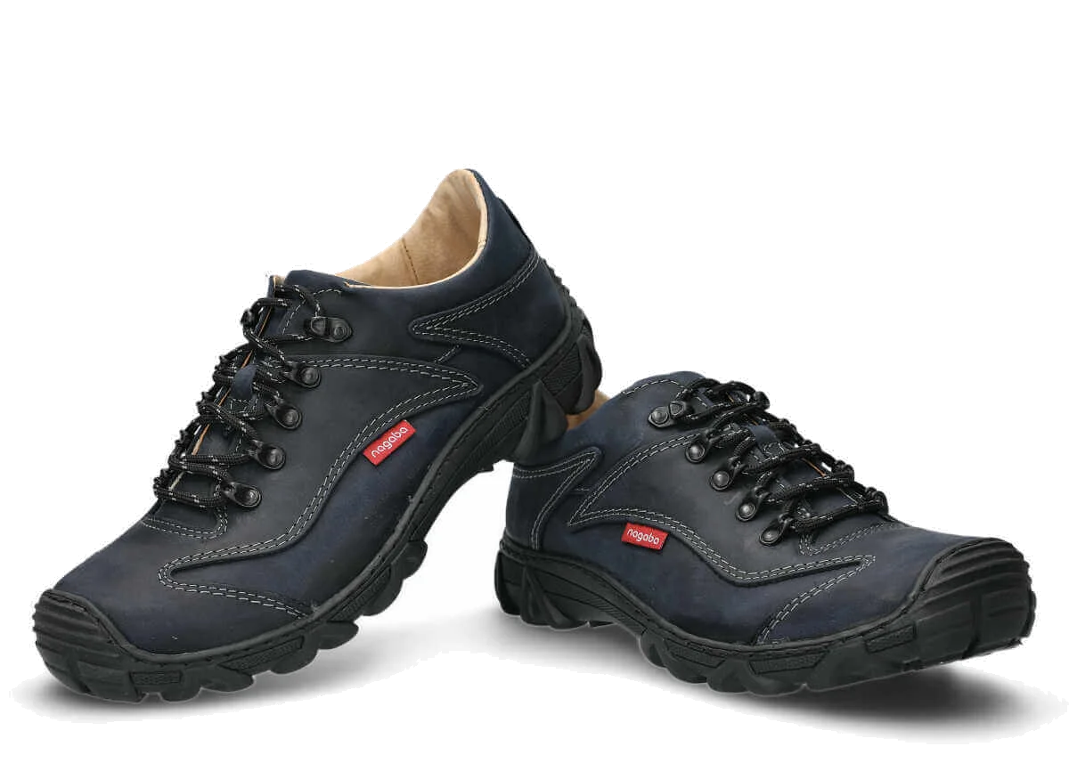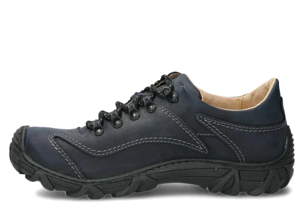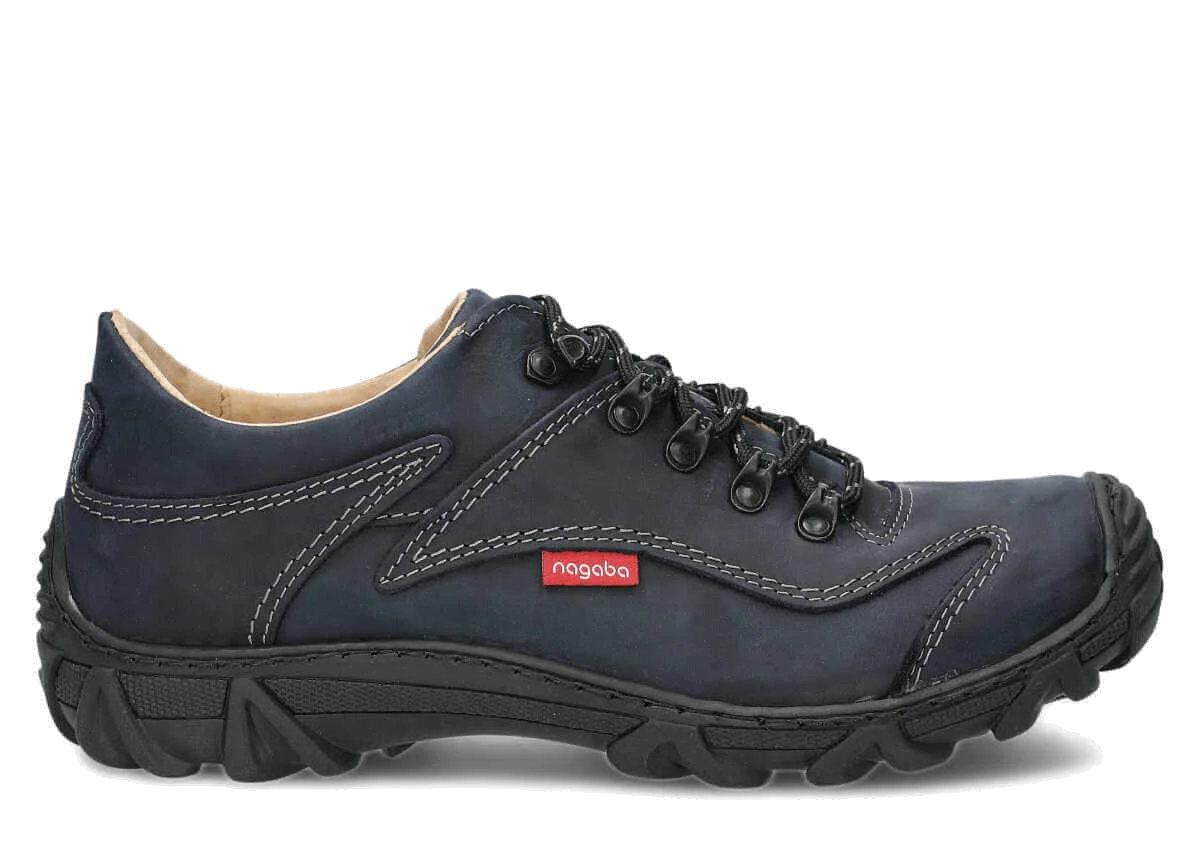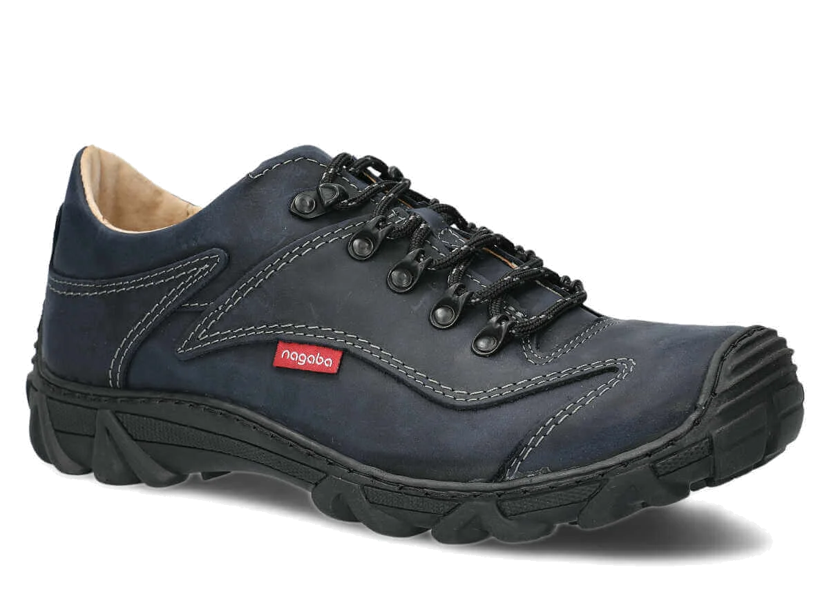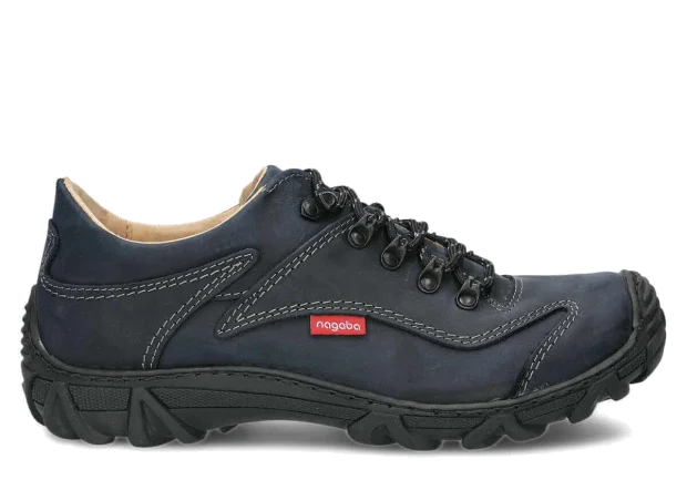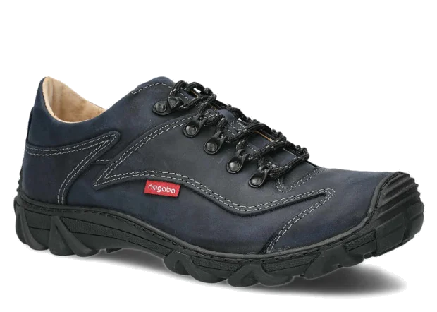Die Schuhe von Nagaba Modell 400 gewährleisten sehr gute Haltbarkeit und gleichzeitig komfortable Nutzung für lange Zeit. Schuhe, die aus natürlichem Leder Crazy in Dunkelblau hergestellt wurden,