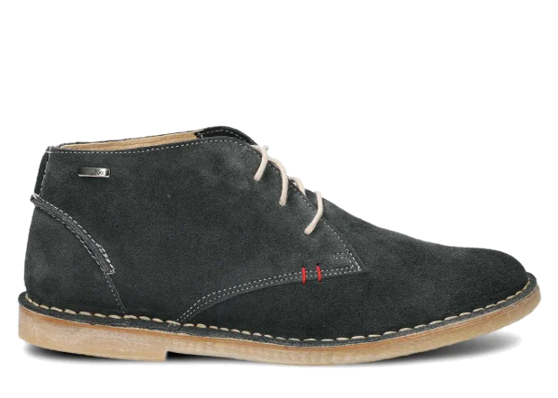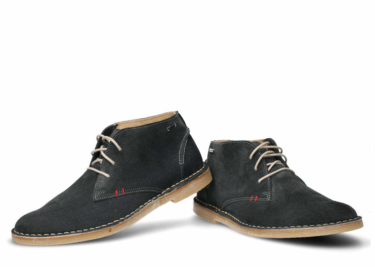 Crazy - fleischiges, dickes Vollnarbenleder. Die Narbenseite ist geölt (mit Wachs oder Fett). Sehr strapazierfähiges Leder, daher oft für die Herstellung von Trekking-, Trapper- und massiven Stiefeln verwendet. Das Leder hat charakteristische dunkle, fettige Flecken, die sich an einigen Stellen zur Grundfarbe hin ausdehnen und an anderen dunkel bleiben. Häufig hat das Leder Kratzer, Abschürfungen und Verfärbungen, die es einzigartig machen.