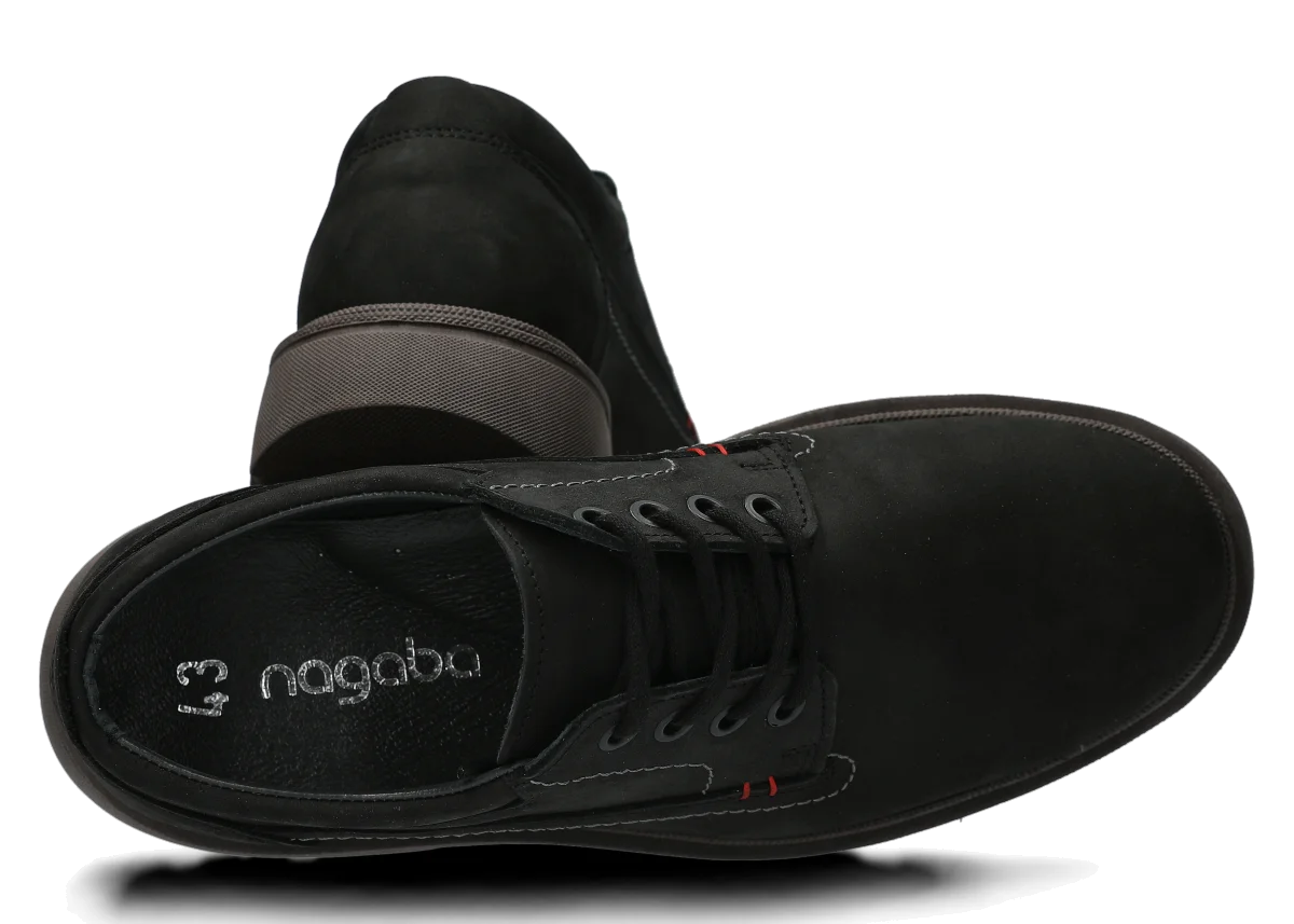 Leder-Traper Herrenschuhe für Männer. Die Herren Lederschuhe Nagaba 475 Schwarz Crazy verbinden klassischen Design mit einer Traper-Sohle – ideal für Frühling, Sommer und Herbst. Hergestellt aus natürlichem Leder vom Typ Crazy, bieten sie Komfort und Langlebigkeit für aktive Männer. Wählen Sie Leder-Traper Herrenschuhe in Rot oder anderen Varianten (Braun, Schwarz, Oliv, Grau, Dunkelblau, Rot)!