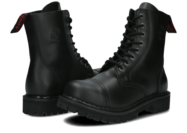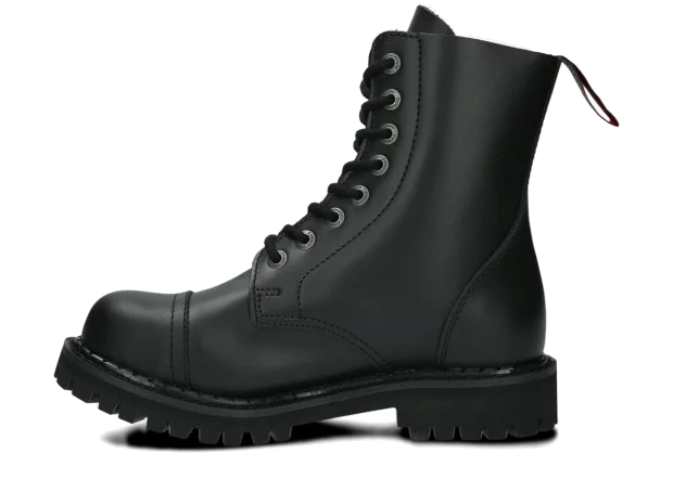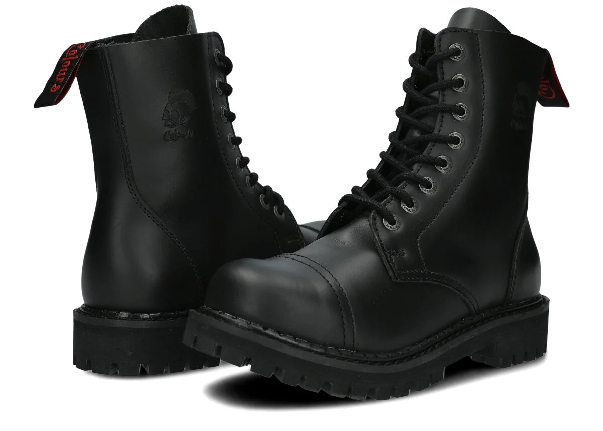 Die empfohlenen Springerstiefel sind so hergestellt, damit sie den besten Tragekomfort sichern. Die Sohle wurde aus Gummi eines polnischen Herstellers mit angebrachten Schrauben und Markenlogo aus Metall gemacht. Die meisten Modelle sind durch Stahlspitzen (Eng. steel toe) gestärkt.