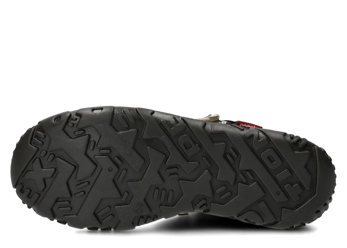 Crazy - fleischiges, dickes Vollnarbenleder. Die Narbenseite ist geölt (mit Wachs oder Fett). Sehr strapazierfähiges Leder, daher oft für die Herstellung von Trekking-, Trapper- und massiven Stiefeln verwendet. Das Leder hat charakteristische dunkle, fettige Flecken, die sich an einigen Stellen zur Grundfarbe hin ausdehnen und an anderen dunkel bleiben. Häufig hat das Leder Kratzer, Abschürfungen und Verfärbungen, die es einzigartig machen.