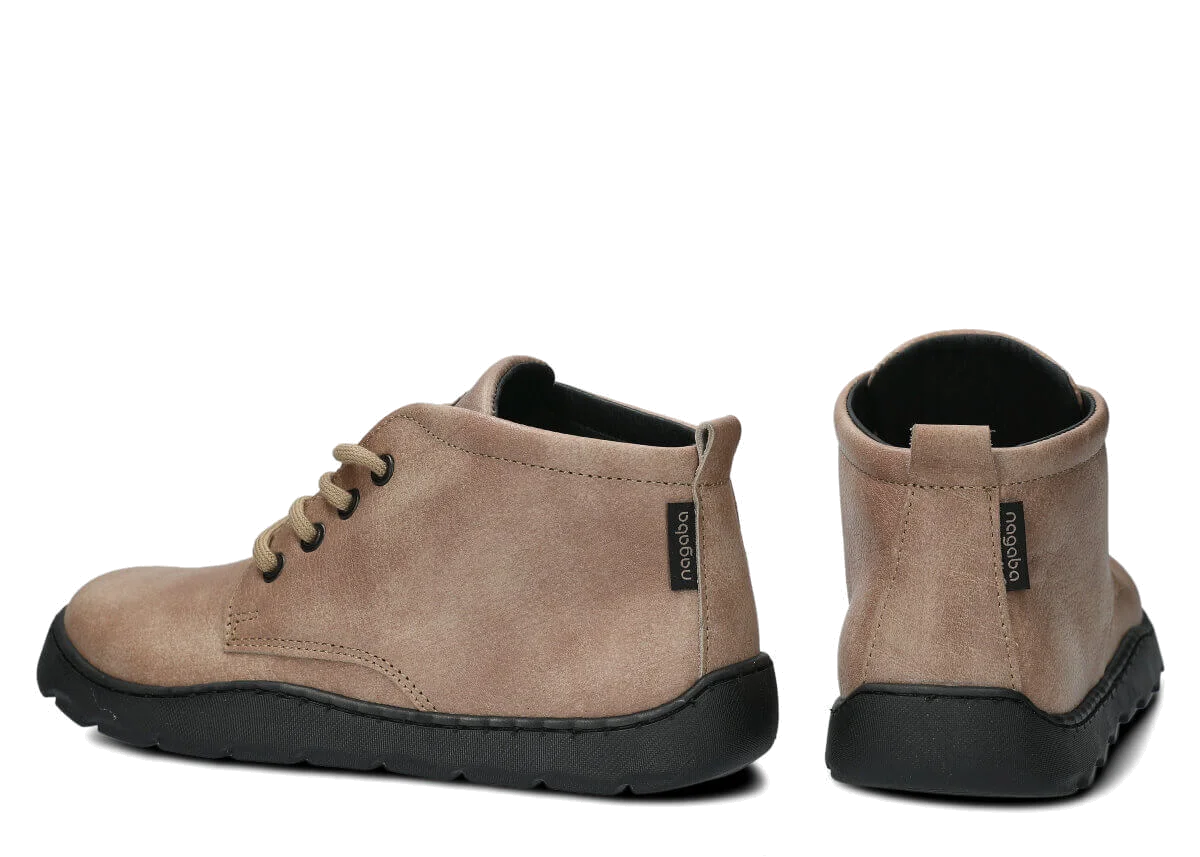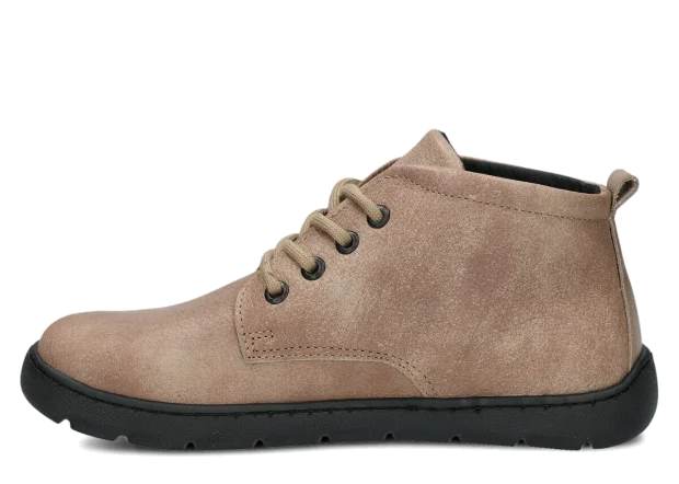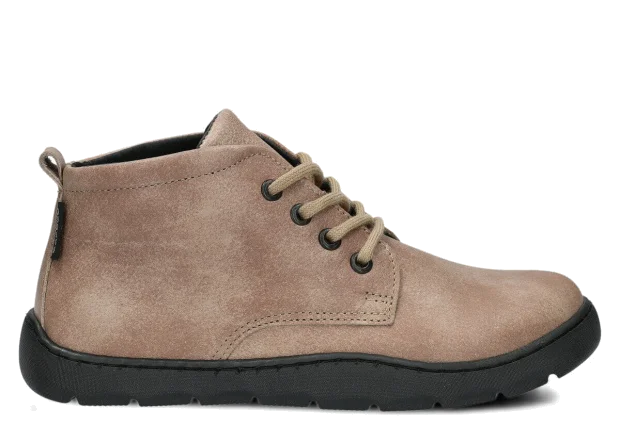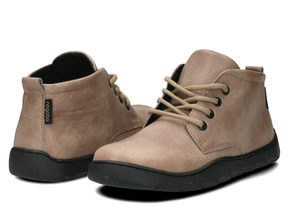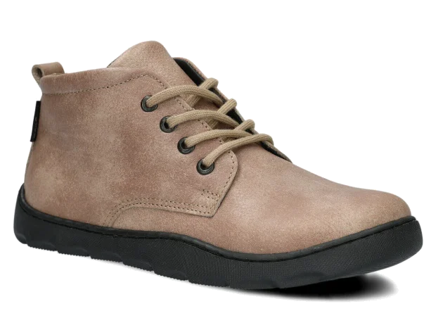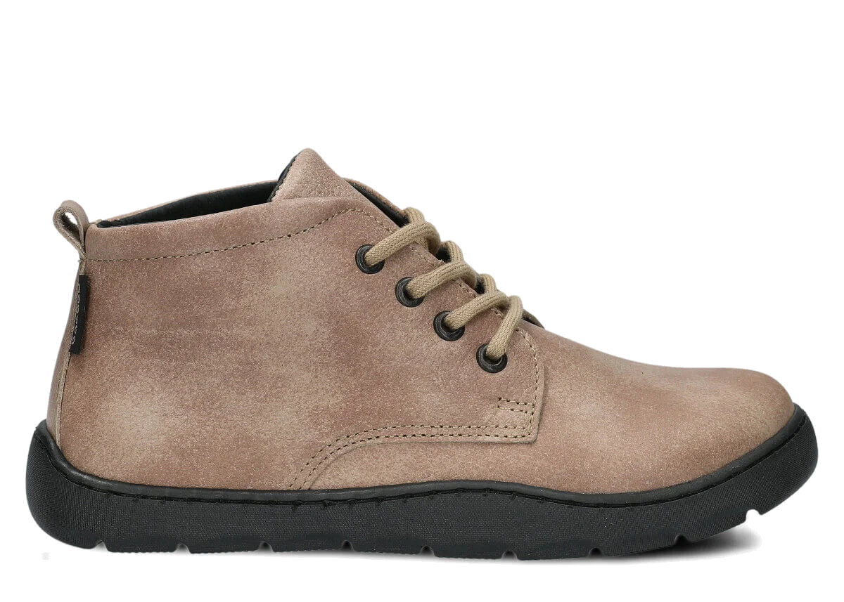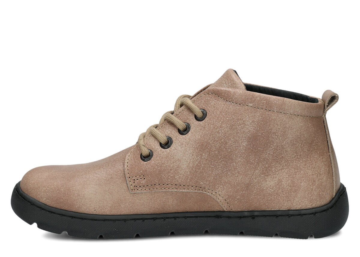Crazy - fleischiges, dickes Vollnarbenleder. Die Narbenseite ist geölt (mit Wachs oder Fett). Sehr strapazierfähiges Leder, daher oft für die Herstellung von Trekking-, Trapper- und massiven Stiefeln verwendet. Das Leder hat charakteristische dunkle, fettige Flecken, die sich an einigen Stellen zur Grundfarbe hin ausdehnen und an anderen dunkel bleiben. Häufig hat das Leder Kratzer, Abschürfungen und Verfärbungen, die es einzigartig machen.