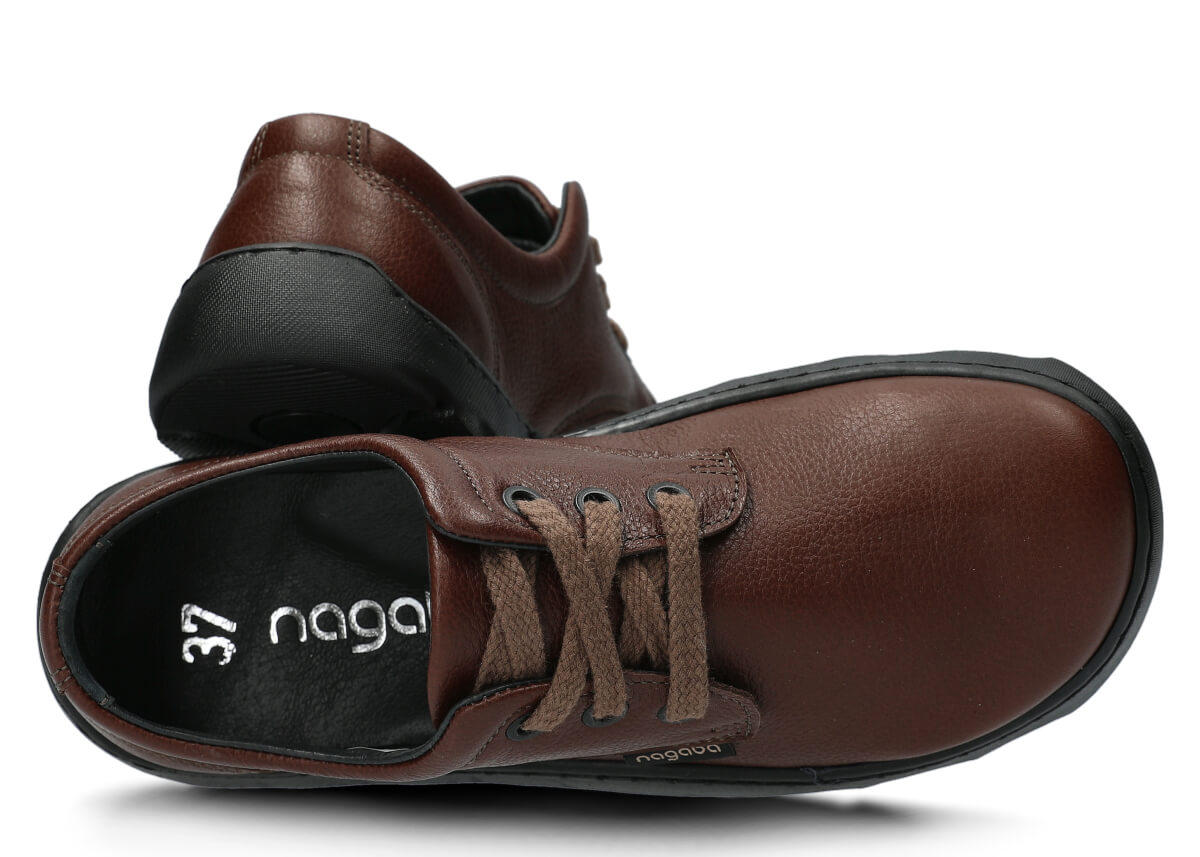 Damenthalbschuh Nagaba Modell 630 Braun Leder – die ideale Lösung für Frauen, die bequeme und gesunde Barefoot-Schuhe suchen, die minimalistisches Design mit Funktionalität verbinden. Dieses Modell ist perfekt für breite Füße, geschwollene Füße, Hallux oder orthopädische Schuhe mit breitem Schnitt.